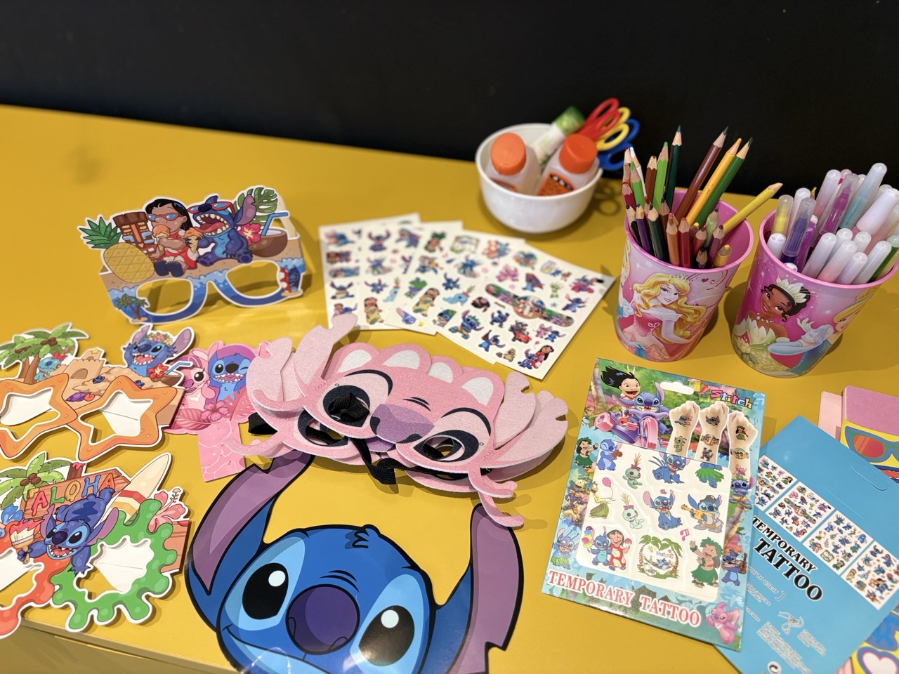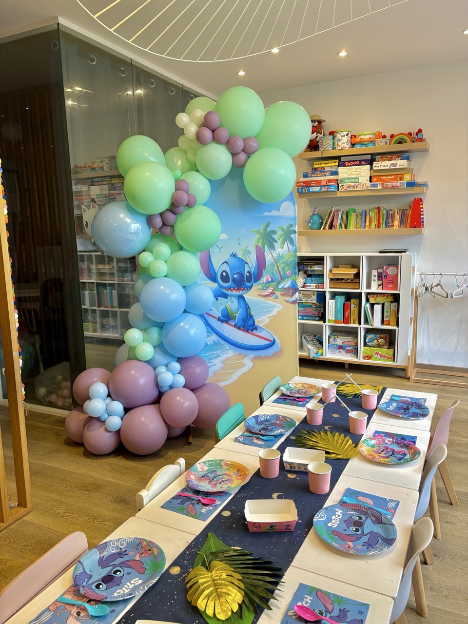 Deux animatrices accompagnent les enfants pendant toute la durée de l’événement avec des jeux ludiques et des ateliers créatifs inspirés de l’univers de Stitch (Ohana, plage, espace et aventures amusantes).